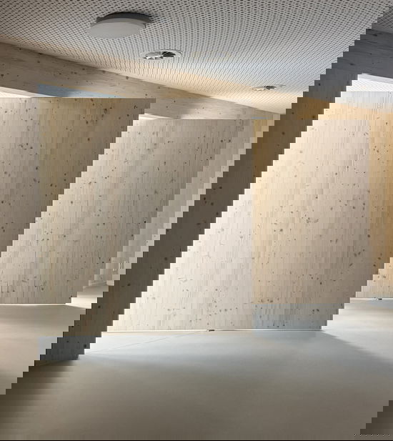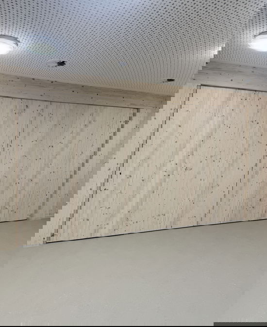 Due grandi porte a bilico in legno di abete dividono e collegano gli spazi interni dell’asilo con un unico gesto. Da chiuse, le porte formano una parete lignea continua; da aperte, dissolvono i confini creando uno spazio condiviso generoso. Il System M+ garantisce un movimento silenzioso e delicato, adatto a un ambiente dedicato ai bambini.